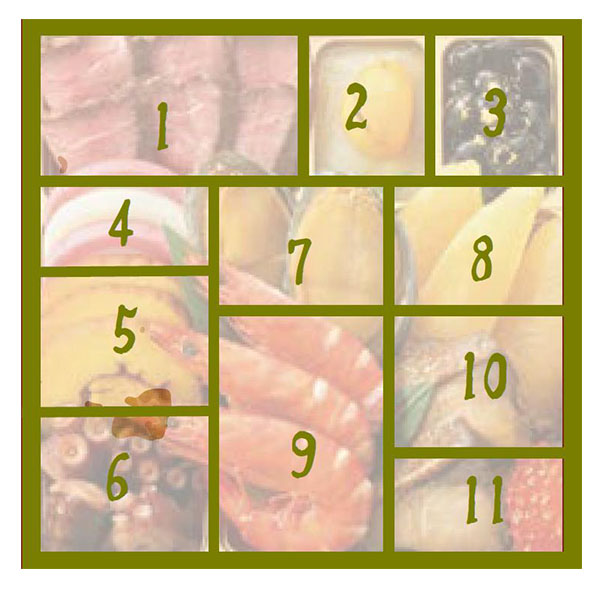 ⑨祝い海老 ⑩ぶり照焼 ⑪鱒いくら醤油漬