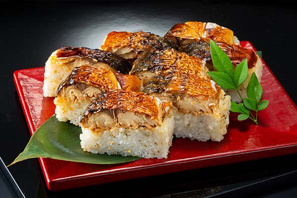 大葉、しょうがが入った酢飯が美味。ゆずが香る特製タレに漬けた鯖を、しっとりと焼き上げました。酢飯には、白ごま、大葉、しょうが入り。
