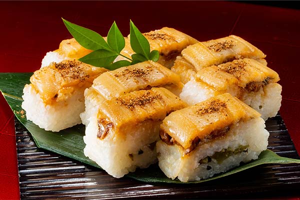口の中でほろっとくずれる煮穴子を押寿司にしました。