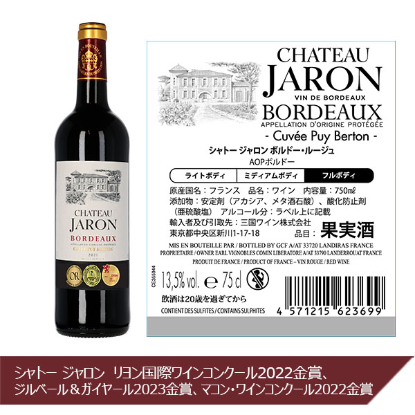 リヨン国際ワインコンクール2022金賞、ジルベール&ガイヤール2023金賞、マコン・ワインコンクール2022金賞