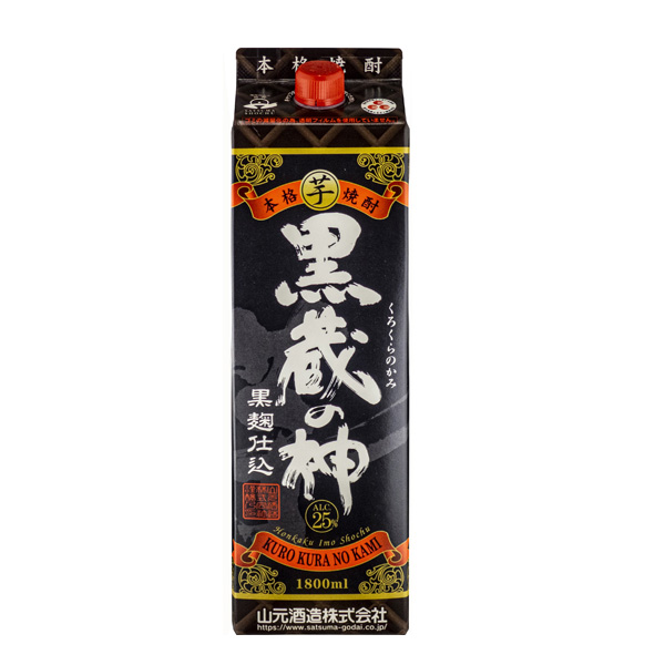黒麹造り「黒蔵の神」は、黒麹を使用することで、豊でコクのある口当たり、甘みのある深い味わいを持つ本格芋焼酎となりました。