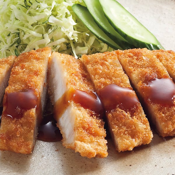 とんかつソースを日本で最初に作り上げた「梅林」ならではのフルーティーでさっぱりとしたオリジナルソース付きです。