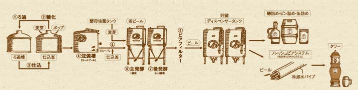 この釜を使っての仕込から、発酵、熟成、ろ過などの工程におよそ30日を要します。
