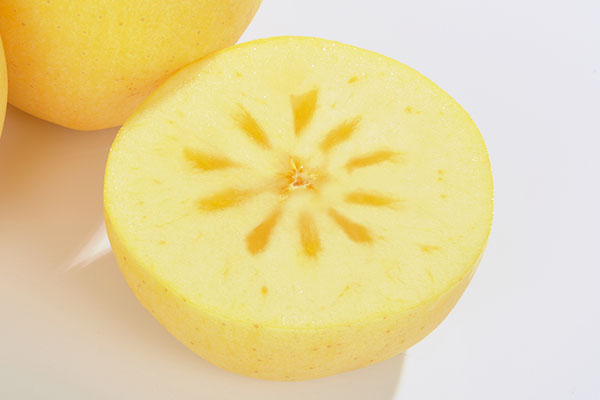 ゆうに13度を超え、それでいて酸味は柔らかく黄色いりんごでは珍しく、蜜が入りやすいと言われている人気のりんごです。