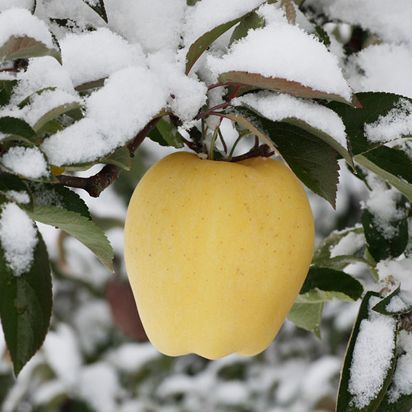 ゆうに13度を超え、それでいて酸味は柔らかく黄色いりんごでは珍しく、蜜が入りやすいと言われている人気のりんごです。