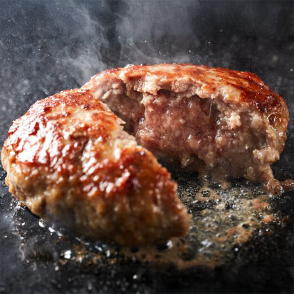 黒毛和牛と白金豚のハイクオリティブレンドのジューシーなまろみ。格之進の肉職人が厳選した上質な黒毛和牛と、岩手県花巻市が誇るブランド豚 「白金豚」 の合挽きハンバーグです。自家製の天然調味料 『オール岩手の塩麹」により、牛肉と豚肉の味のバランスを取り、旨味を引き立てております。