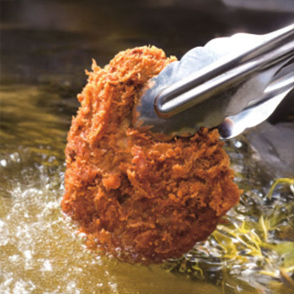 2.温めた油の中へメンチカツを冷凍のまま入れ、返しながら約4分、両面がキツネ色になるまで揚げます。