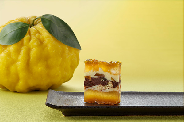 獅子柚子のミルフィーユは、希少品種と言われる獅子柚子をじっくり煮込んだミルフィーユです。