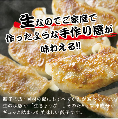 皮はパリッと、中はジューシーな餡、国産のお野菜とお肉を使用した生餃子!